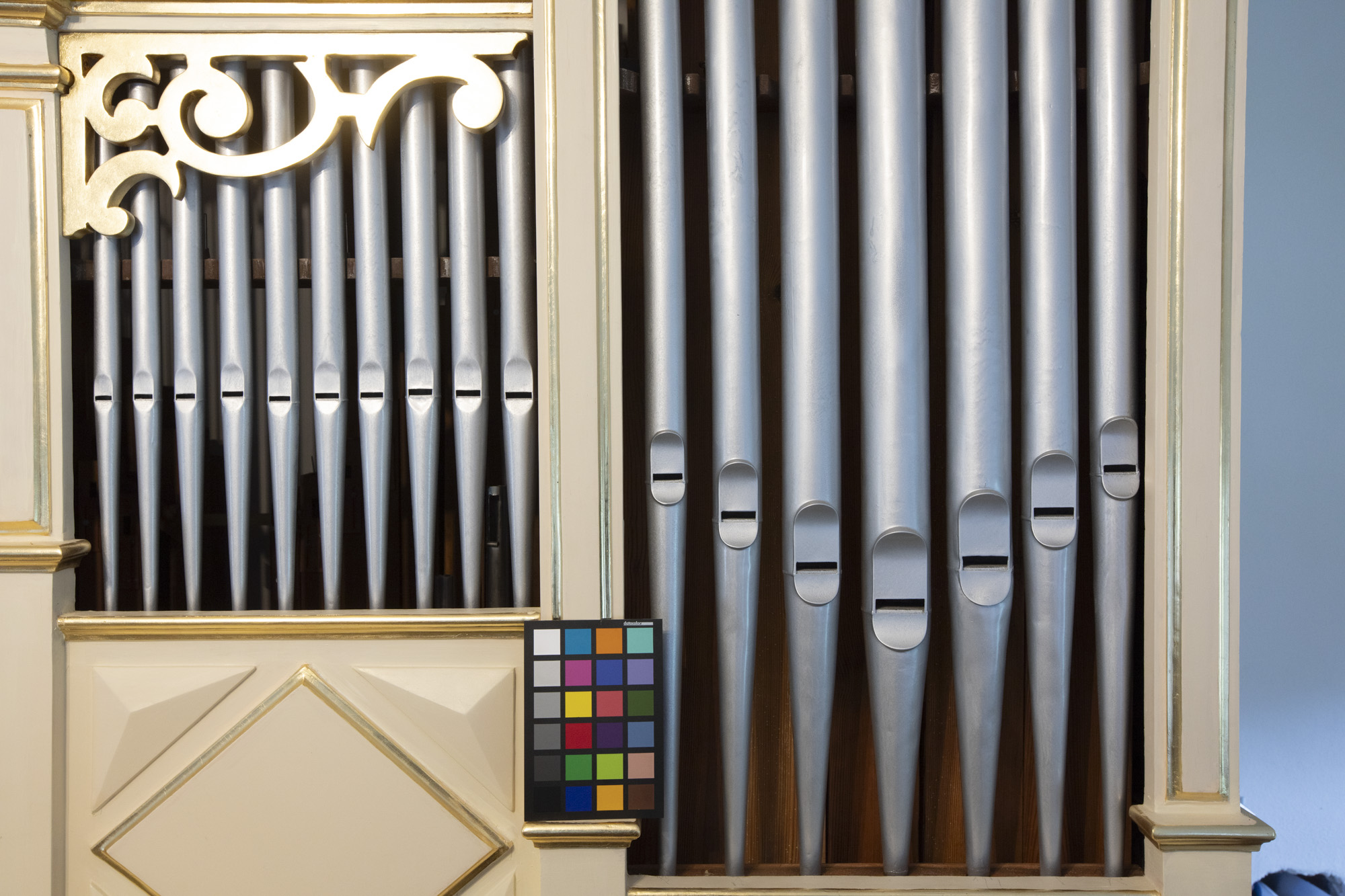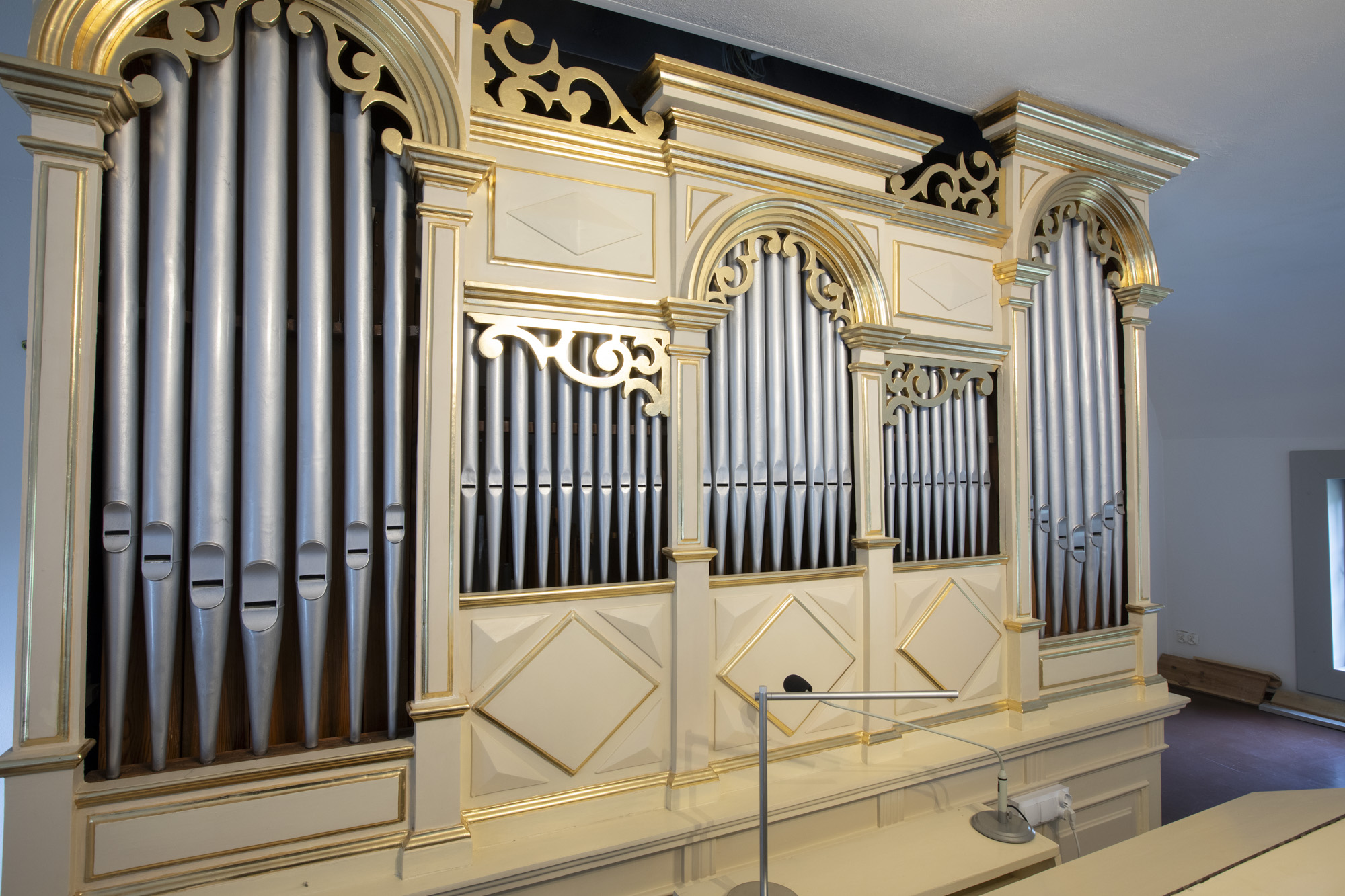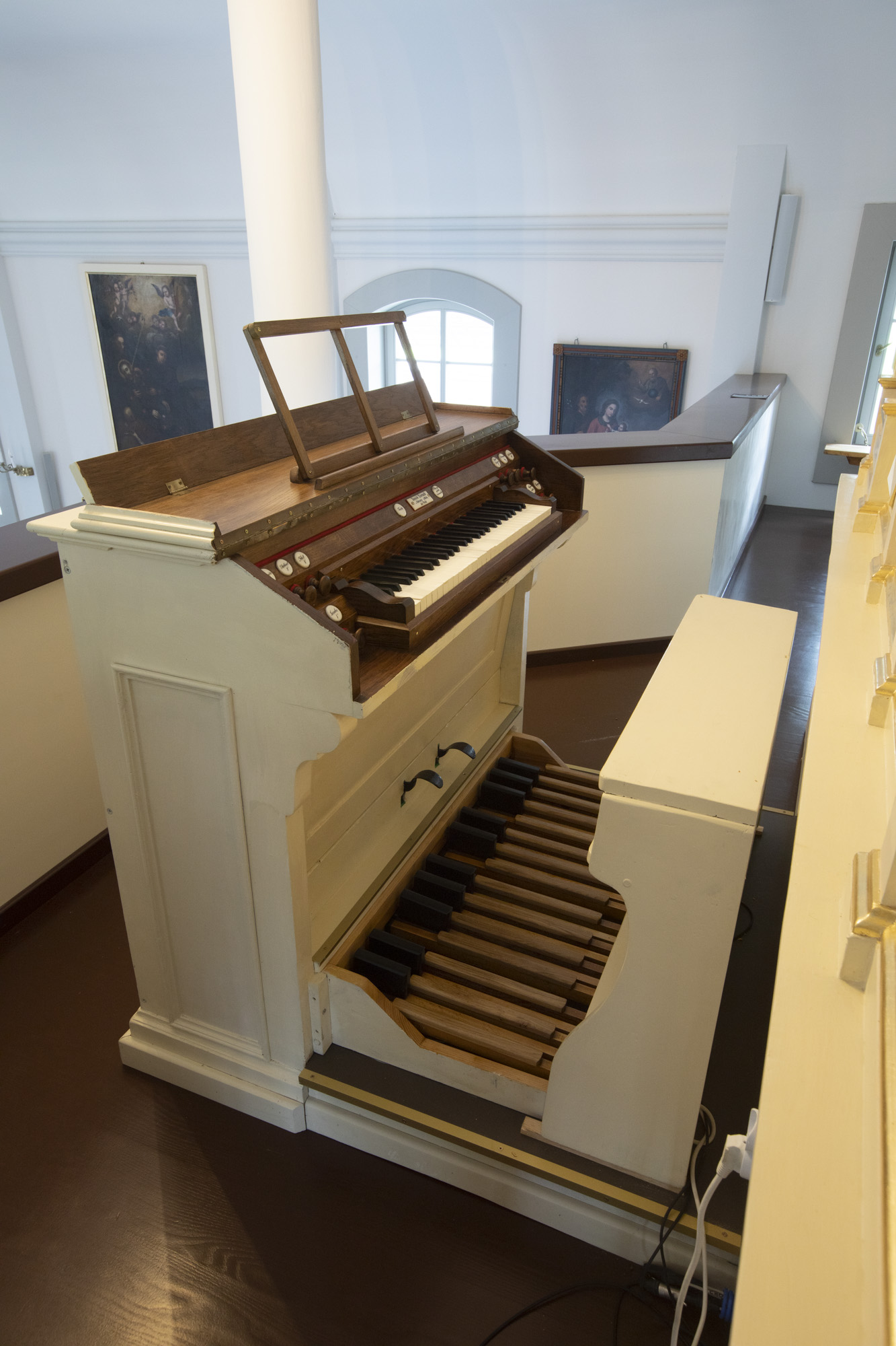 Organ o 1 manuale z pedałem nożnym, 15-głosowe o napędzie ręcznym i dodatkowo mechanicznym (elektryczny motor). Szafa architektoniczna urozmaicona 5-ma płycinami, w tym trzy płyciny zakończone archiwoltą na pilastrach. W tle płycin piszczałki cynowe. Stół do gry, przed szafą, opatrzony emaliowaną tabliczką firmy "Dominik Biernacki w Dobrzyniu n. Wisłą, gub. Płocka". |