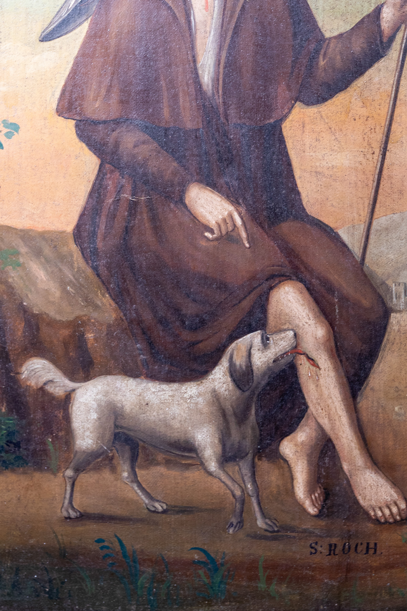 Feretron dwustronny, z prostokątną ramą wewnątrz, ustawiony na sarkofagowym cokole, z prostokątnymi otworami na drążki. Z cokołów, wzdłuż bocznych i górnej ramy biegnie para ażurowych gałązek akantu z owocami w formie stylizowanych gwiazdek. W zwieńczeniu Oko Opatrzności, nad którym zamknięta korona zwieńczona krzyżem maltańskim. Na awersie obraz świętego Rocha. Na rewersie święta Rozalia - u, której inskrypcja: "Fundatorem Gromady Wielopole, staraniem Walentego...DN 7 maja 1853".