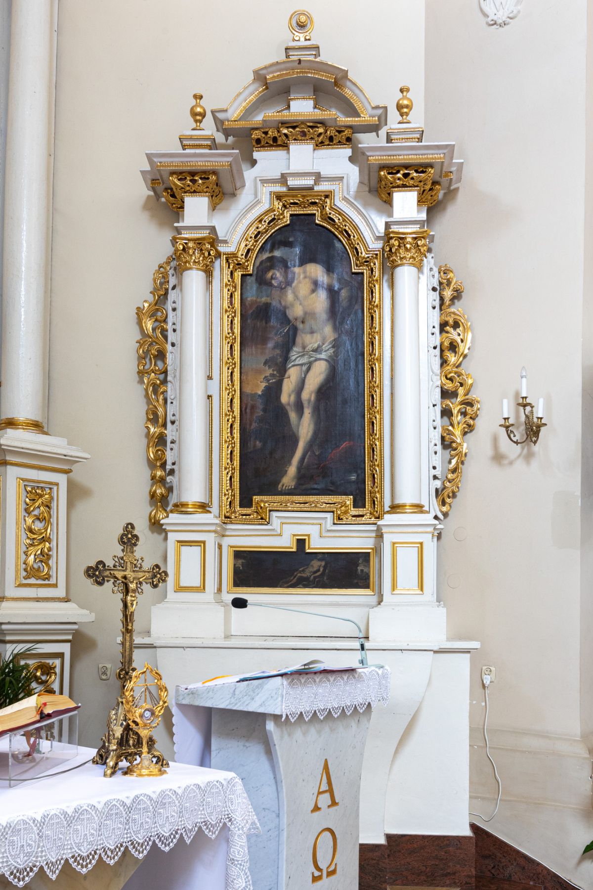 Obraz świętego Sebastiana w ołtarzu bocznym