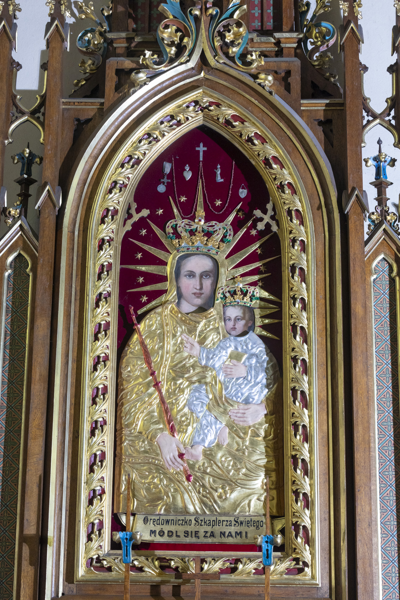 Obraz Matki Boskiej Szkaplerznej w lewym ołtarzu bocznym