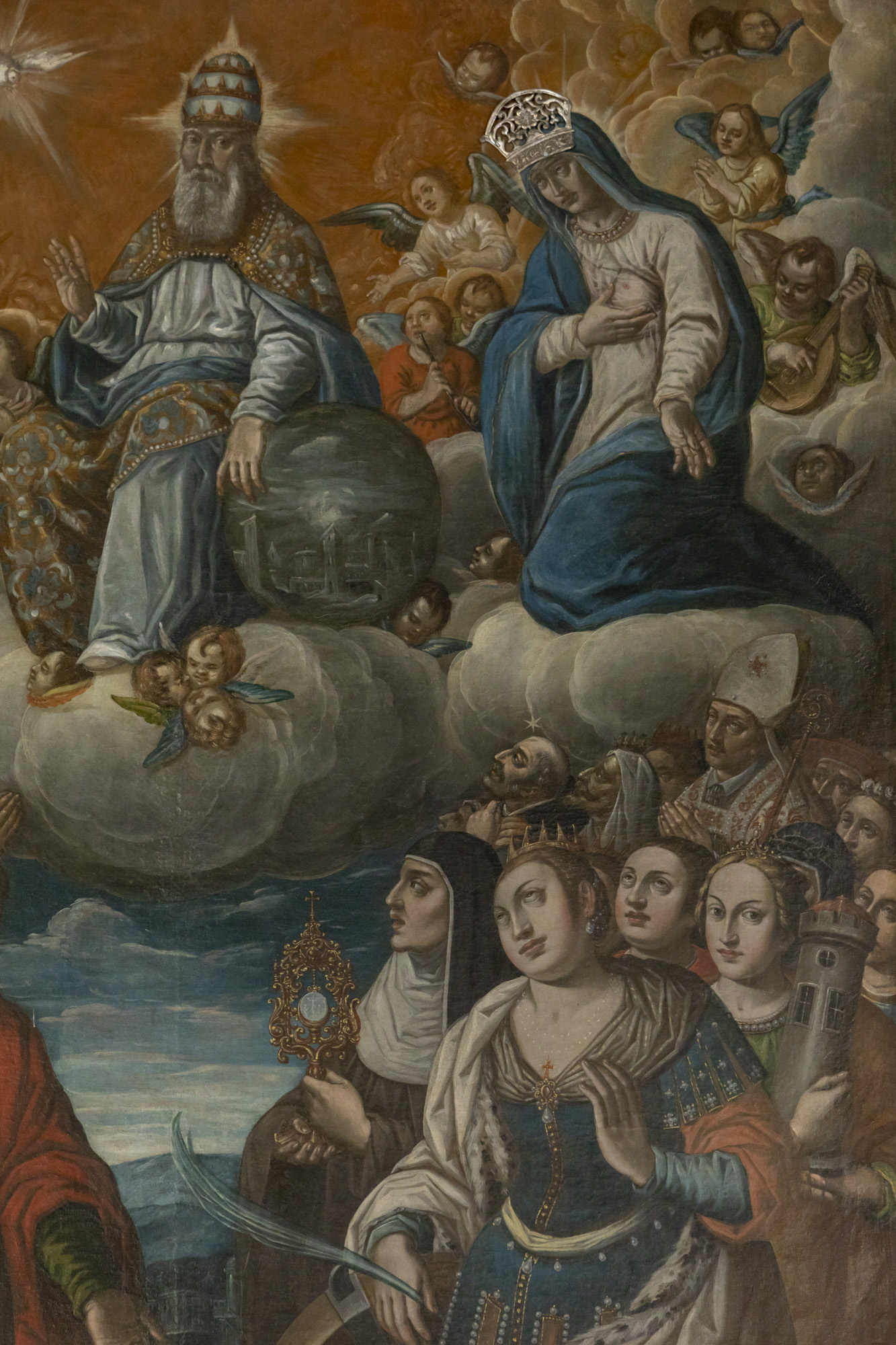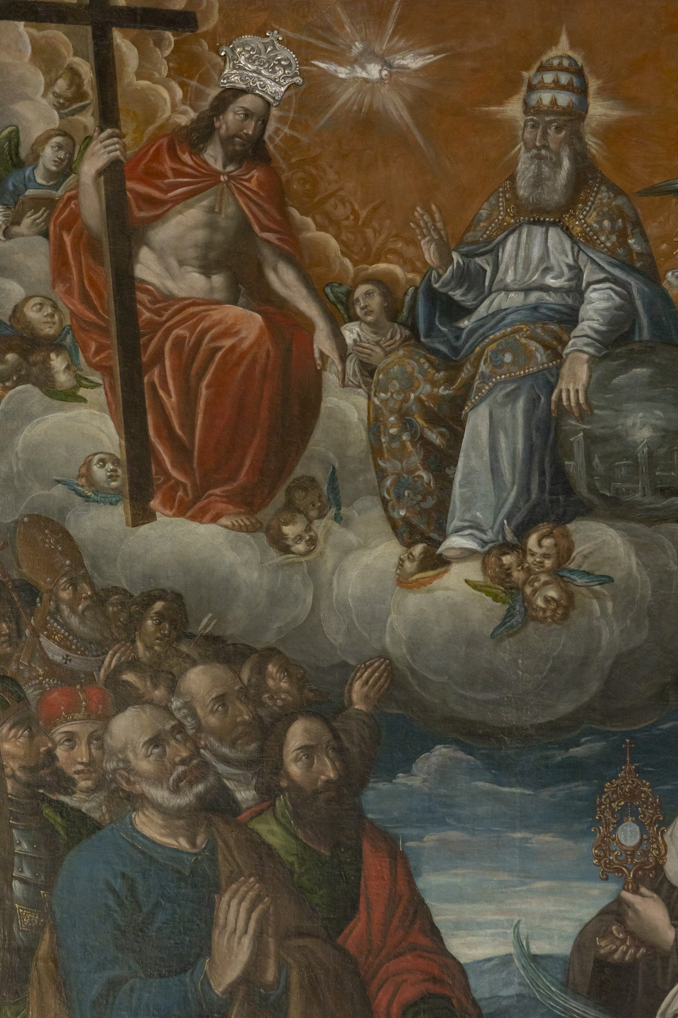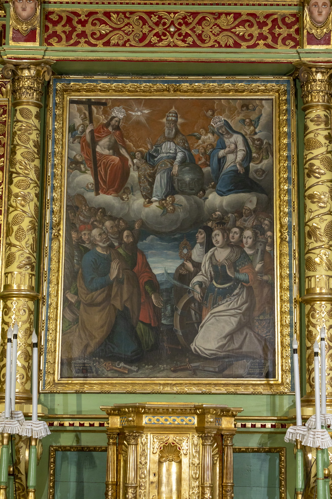OBRAZ ADORACJI TRÓJCY ŚW. I MATKI BOSKIEJ PRZEZ ŚWIĘTYCH w ołtarzu głównym |