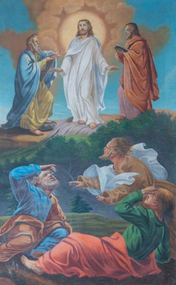 Obraz zamknięty łukiem od góry, przedstawia Świętą Rodzinę na tle ciemnego wnętrza. Kompozycja postaci w trójkącie – Matka Boska z Dzieciątkiem na ręku, siedząca z lewej strony obrazu, z prawej strony święta Anna, za nią bardziej z prawej widoczna w cieniu twarz świętego Joachima. U stóp świętej Anny - dziecięcy Święty Jan Chrzciciel, w górnej partii obrazu, między Świętą Anną i Madonną, ponad nimi - Anioł. Twarze pełne, o małych oczkach, karnacja cielisto-brązowo-różowa. Dolna część z szachownicową posadzką, na której stoi kosz z owocami. Kolory: czerwony, błękitny, brunatny, brązowy, różowo-czerwony. Kolory w światłach rozbielone.