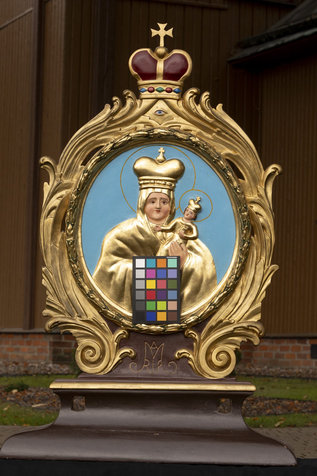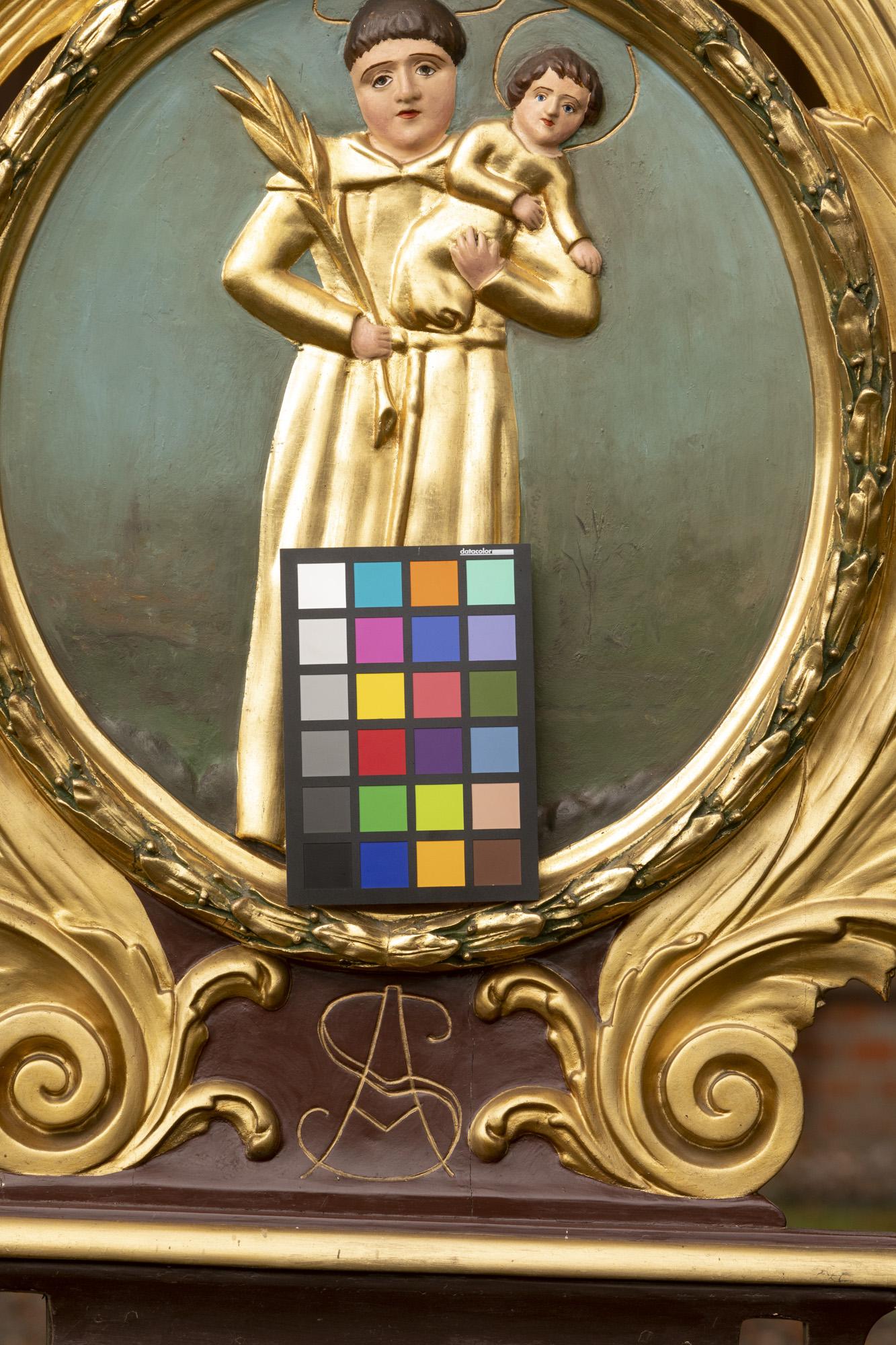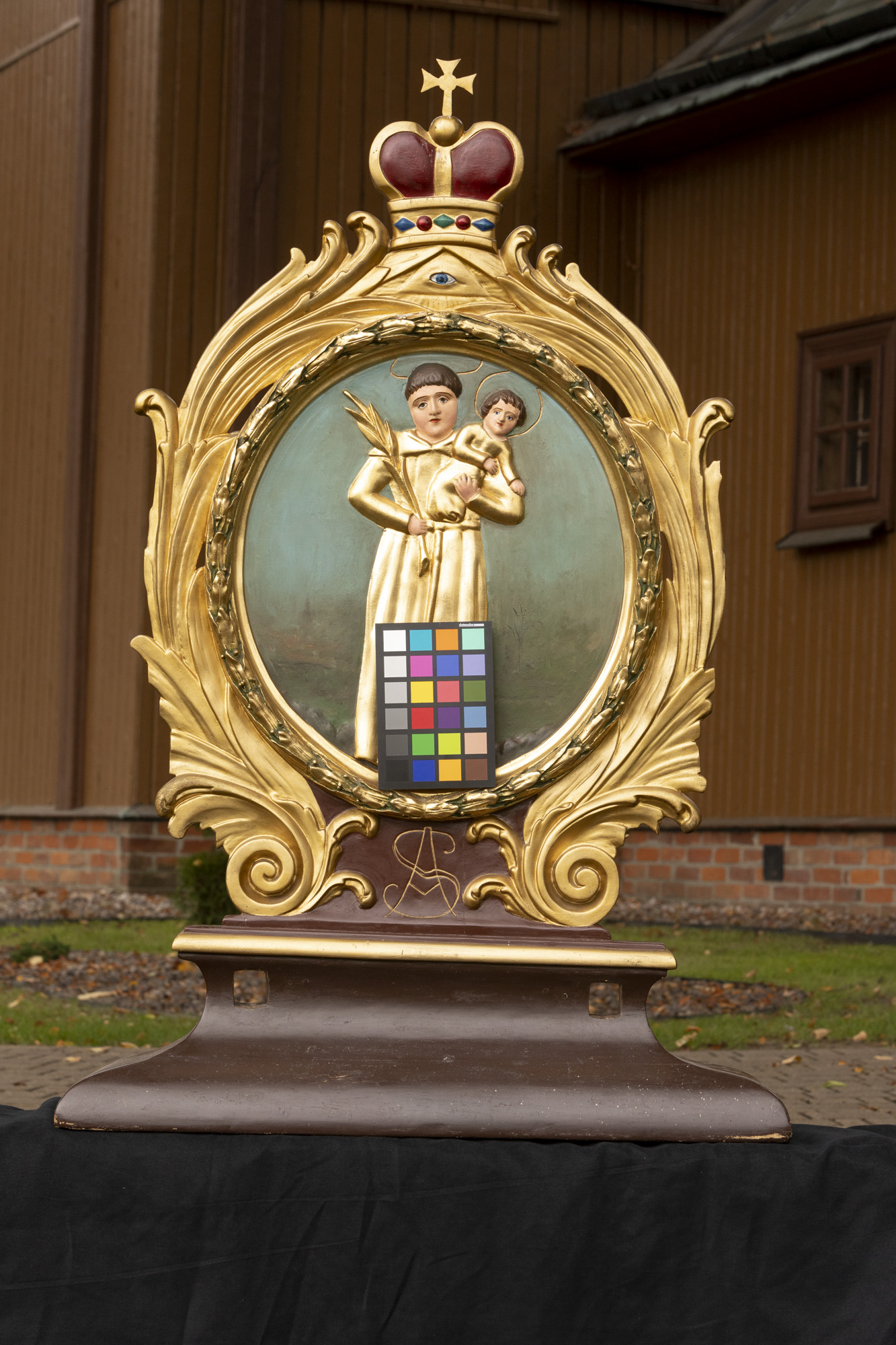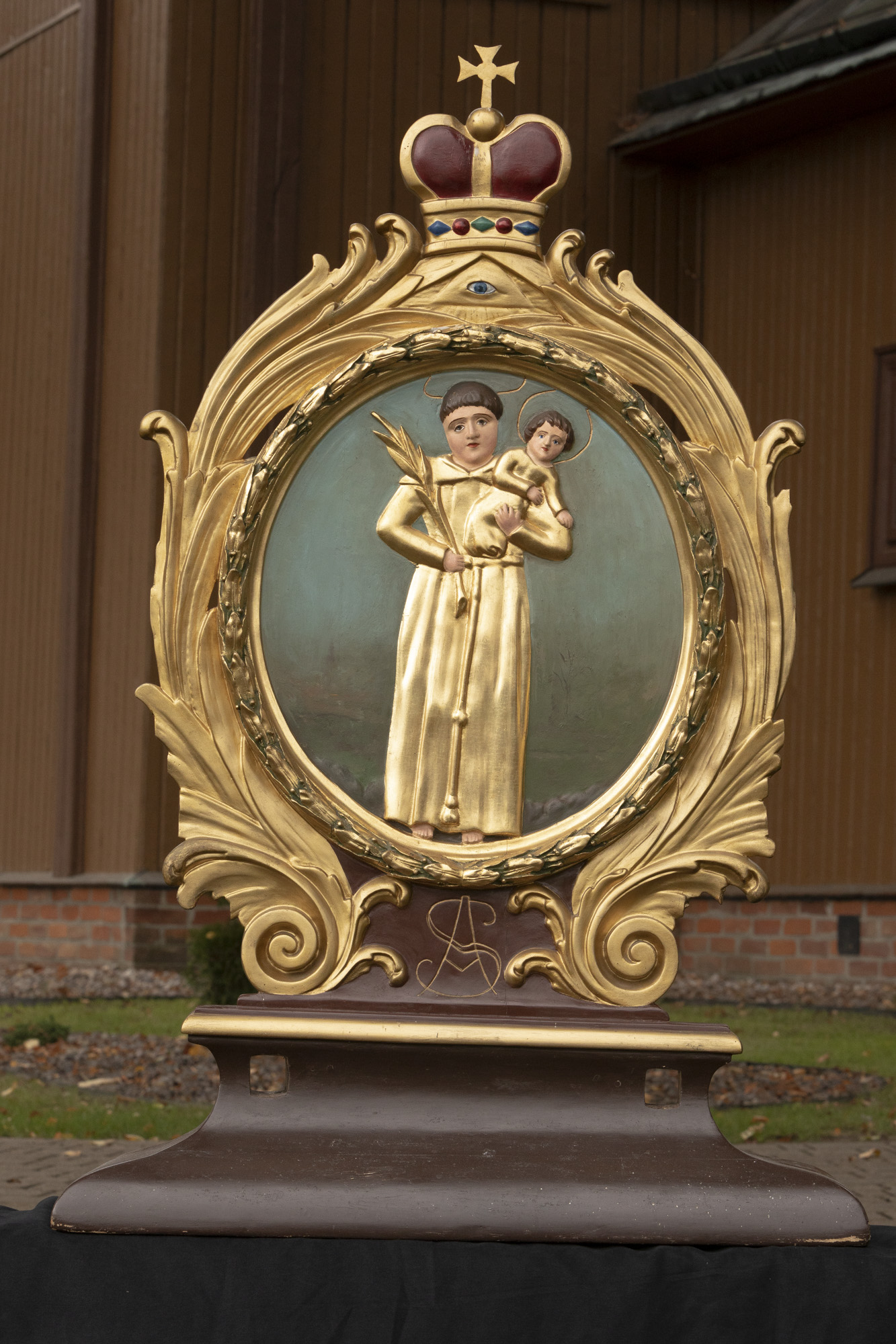 Feretron z płaskorzeźbami św. Antoni z Dzieciątkiem i Matka Boska z Dzieciątkiem