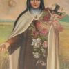 | Opis | Według miejscowej tradycji obraz przypisywany Wojciechowi Gersonowi – czego wyrazem jest napis W. Barnickiego z Lublina, odmawiającego obraz w 1907 r. Obraz prostokątny, zamknięty od góry półkoliście. Przedstawia świętego stojącego przed warsztatem stolarskim, wspartego prawą ręką na pulpicie warsztatu. Warsztat z lewej strony. Święty w szerokiej szacie przewiązanej w pasie, trzyma w lewej ręce lilię. Głowa skierowana w lewo; twarz z małą brodą, włosy opadające na kark; nad głową nimb. Tło w górnej części z obłokami i jasnym prześwitem między nimi, dolna partia tła gładka. W dolnym lewym rogu obrazu napis: "Gerson 1859 Warszawa, W. Barnicki 1907 r. Lublin". Koloryt: szata świętego jasno – brązowa, włosy i zarost siwe, warsztat brązowy. Tło brązowe, z partią rozjaśnioną jasno – brązowe. |